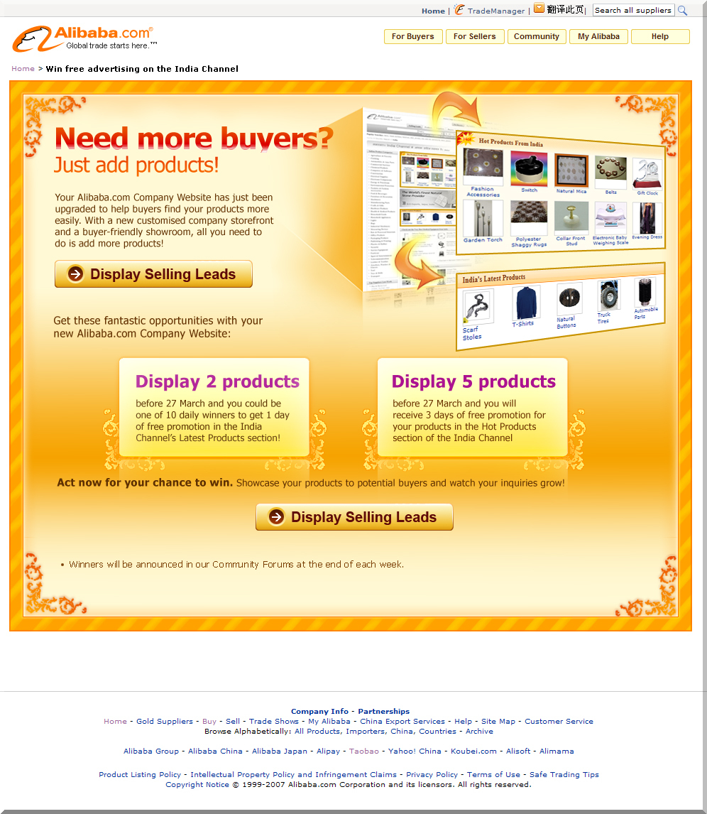 The promotion is design for the indian,and to attract them to register as a member alibaba